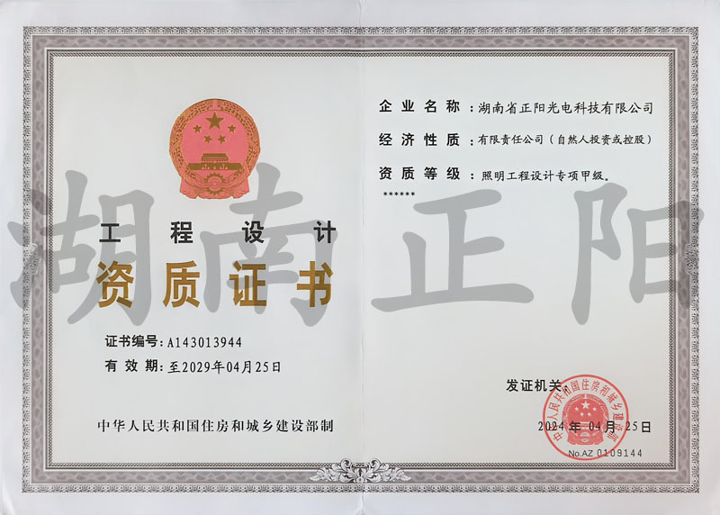 • 照明工程設計專項甲級資質(zhì)